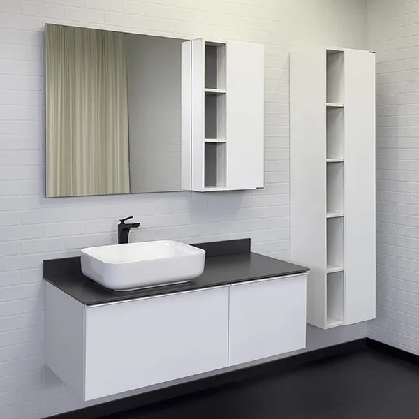 Тумба с раковиной Comforty Милан 00-00014006 120 см белыйХарактеристики: Тумба: Цвет: белый глянцевый. Цвет столешницы: под мрамор Калакатта Блэк. Материал тумбы: влагостойкий ЛДСП, МДФ. Материал столешницы: керамогранит. Организация хранения: два ящика с системой плавного закрывания. За правым фасадом внутренний ящик оснащен системой push-to-open (открытие при нажатии). Тумба подготовлена для подключения водоснабжения снизу. Монтаж: подвесной. Раковина-чаша: Цвет: белый. Материал: санфарфор. Форма: прямоугольная. В комплекте поставки: тумба, столешница, раковина-чаша T-Y9378, крепежный комплект