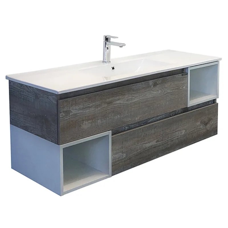 Тумба с раковиной Comforty Турин 00-00013939 120 см дуб бежевыйХарактеристики: Тумба: Цвет: дуб бежевый, белый глянец. Материал тумбы: влагостойкий ЛДСП. Организация хранения: два ящика, две открыты полки. Ящики оборудованы системой плавного закрывания. Монтаж: подвесной. Раковина: Цвет: белый. Материал: санфарфор. Форма: прямоугольная. Одно отверстие под смеситель. Отверстие под перелив. В комплекте поставки: тумба, раковина Comforty 9120E, крепежный комплект