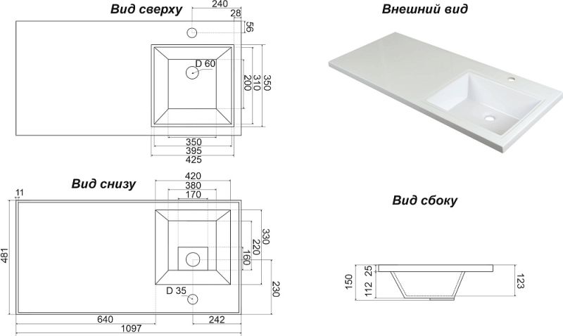 - Диаметр слива: 4,5 см