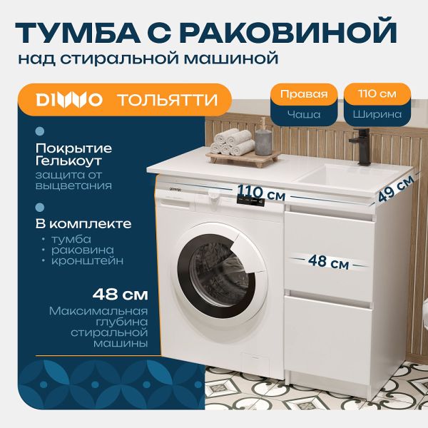- Возможна установка над стиральной машиной