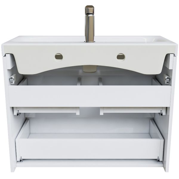 Тумба с раковиной Iddis Zodiac 80 ZOD8CB0i95K подвесная.Фасад и боковины изготовлены из ЛДСП, покрыты несколькими слоями белоснежной эмали. Такое качественное исполнение обеспечит долгий срок службы мебели во влажном помещении ванной (при соблюдении рекомендаций по уходу).Керамический умывальник с высоким бортом и большой вместительной чашей в комплекте. Удобен для гигиеническихи хозяйственных нужд.Два вместительных выдвижных ящика с механизмом плавного доведения закрываются плавно и бесшумно. Интегрированные ручки. Фурнитура рассчитана на 30 000 открываний, что составляет более 10 лет исправной работы.Характеристики:Цвет: белый.