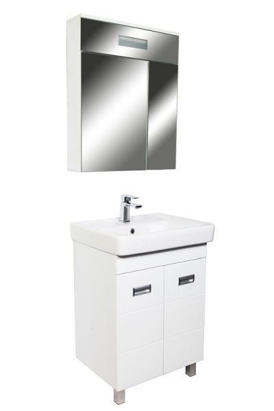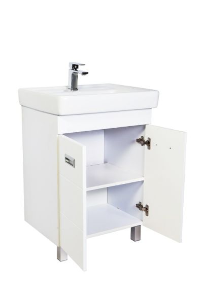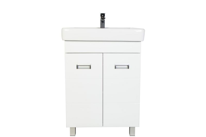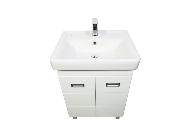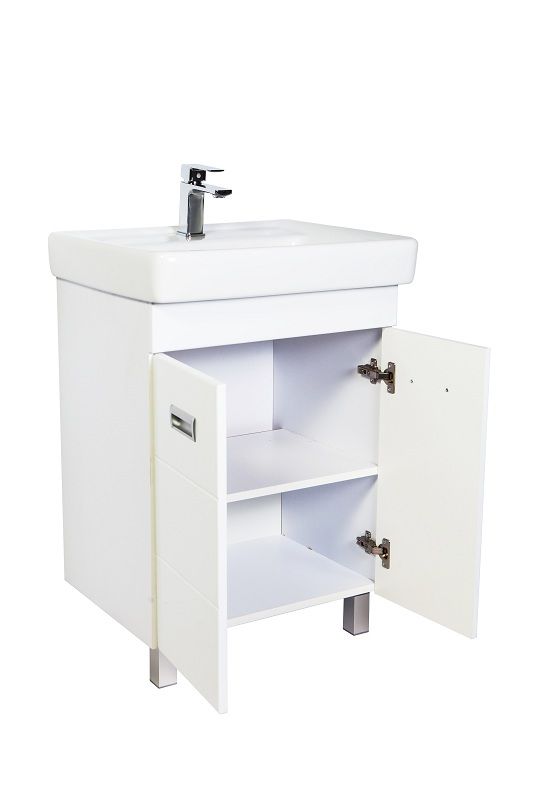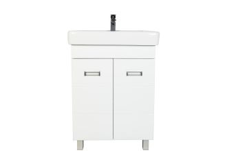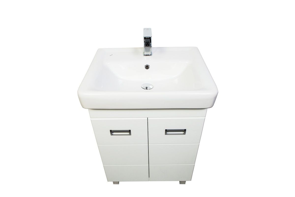 Напольная тумба с раковиной. Предназначена для использования в ванных комнатах с повышенной влажностью. Дверки c механизмом доводчика, обеспечивающим плавное закрывание. Фасад МДФ в пленке - белый глянец, корпус ЛДСП - белый глянец. Раковина - фаянс. Фурнитура в цвете хром. В комплекте внутренняя полочка, н-р ножек. Зеркальны шкаф для комплекта (арт. Ta-60ZSW) приобретается дополнительно.