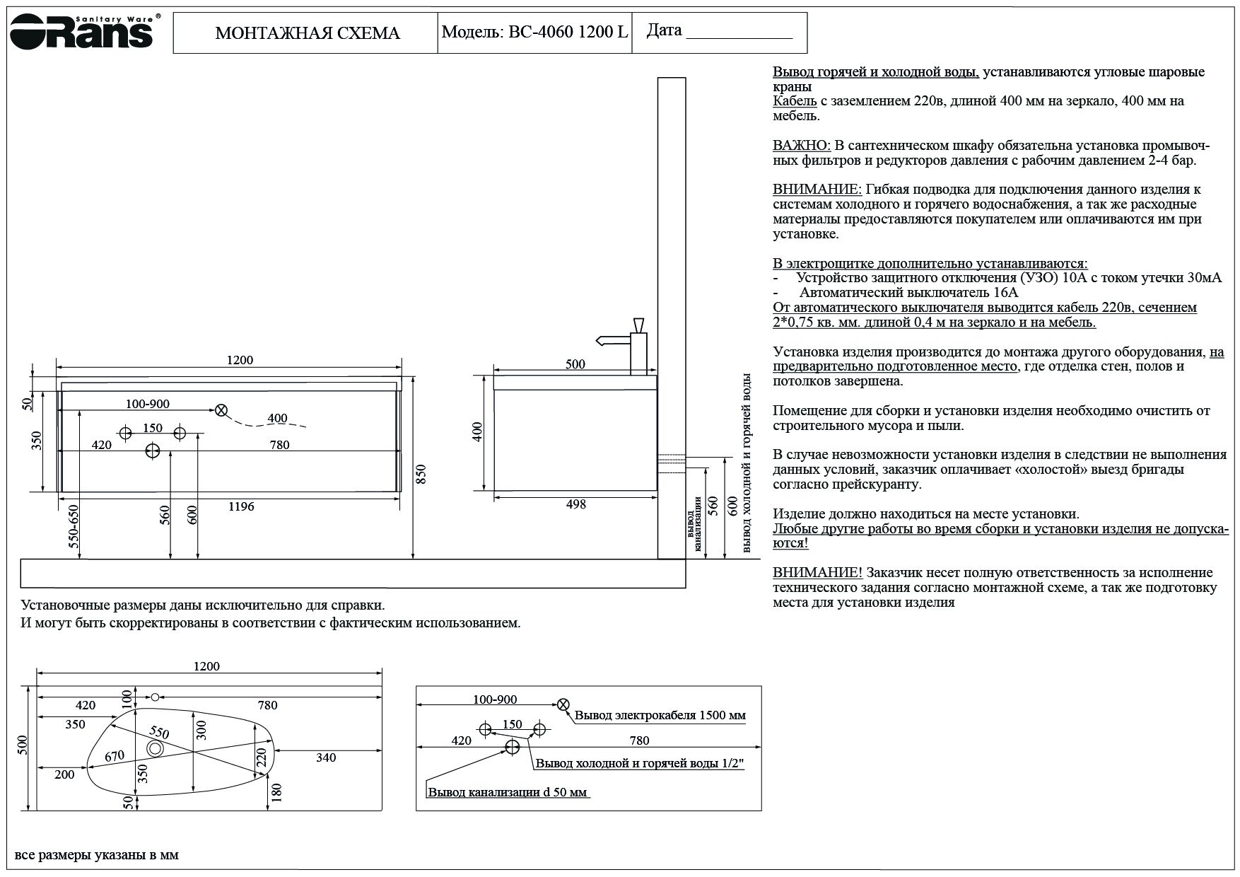 Тумба с раковиной Orans BC-4060-1200L - это изысканное решение для вашей ванной комнаты, сочет... Подробнее