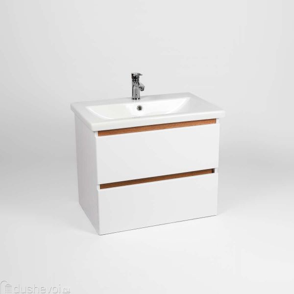 Тумба с раковиной VIANT Мальта 70 подвесная, белая, дуб вотан, 2 ящика купить