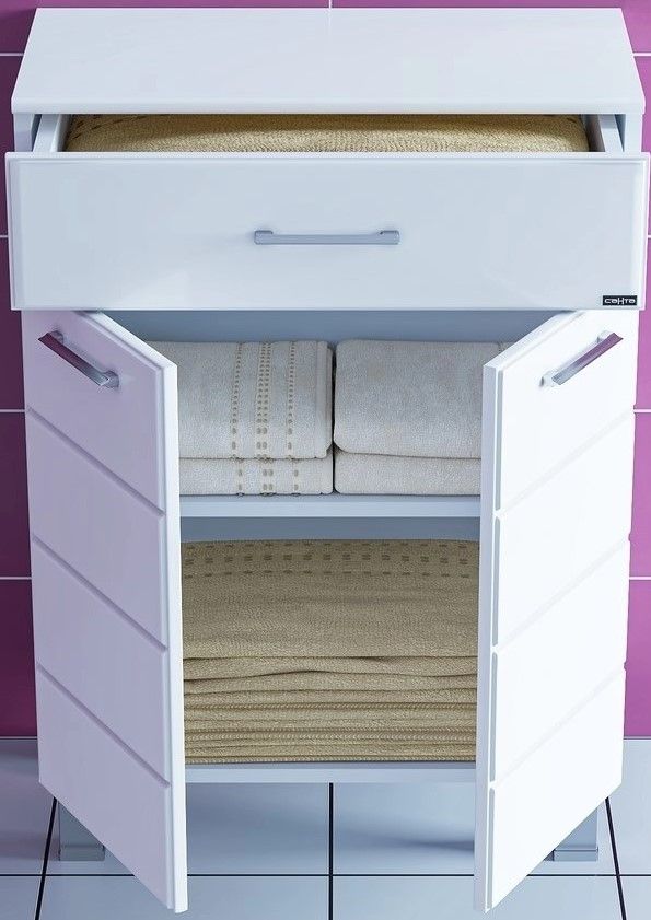Тумба СанТа отлично подойдет как для просторной ванной комнаты, так и для небольшого помещения. Напольный способ установки производится непосредственно на пол, при этом конструкция максимально устойчива при серьезных физических нагрузках.В производстве используют только качественные влагостойкие материалы (ВЛДСП), в составе которых полностью отсутствуют опасные вещества. Серия отличается превосходным дизайном с соблюдением всех ключевых элементов современного стиля. Основным цветом, в котором выполнена тумба СанТа является белый, гармонирующий с большинством интерьерных решений. Тумба предусматривает удобную и вместительную систему хранения, состоящую из дверей, ящиков. Качественные доводчики позволяют обеспечить мягкое и тихое закрывание.Страной бренда СанТа является Россия, все товары производятся с выполнением соответствующих стандартов качества, что позволяет быть полностью уверенными в долговечности и надежности. Тумба СанТа правильный выбор в современном дизайне ванной, придающий уникальность всему помещению, при этом сохраняя функциональность.