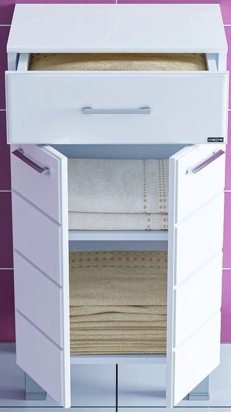 Тумба СанТа отлично подойдет как для просторной ванной комнаты, так и для небольшого помещения. Напольный способ установки производится непосредственно на пол, при этом конструкция максимально устойчива при серьезных физических нагрузках.В производстве используют только качественные влагостойкие материалы (ВЛДСП), в составе которых полностью отсутствуют опасные вещества. Серия отличается превосходным дизайном с соблюдением всех ключевых элементов современного стиля. Основным цветом, в котором выполнена тумба СанТа является белый, гармонирующий с большинством интерьерных решений. Тумба предусматривает удобную и вместительную систему хранения, состоящую из дверей, ящиков. Качественные доводчики позволяют обеспечить мягкое и тихое закрывание.Страной бренда СанТа является Россия, все товары производятся с выполнением соответствующих стандартов качества, что позволяет быть полностью уверенными в долговечности и надежности. Тумба СанТа правильный выбор в современном дизайне ванной, придающий уникальность всему помещению, при этом сохраняя функциональность.