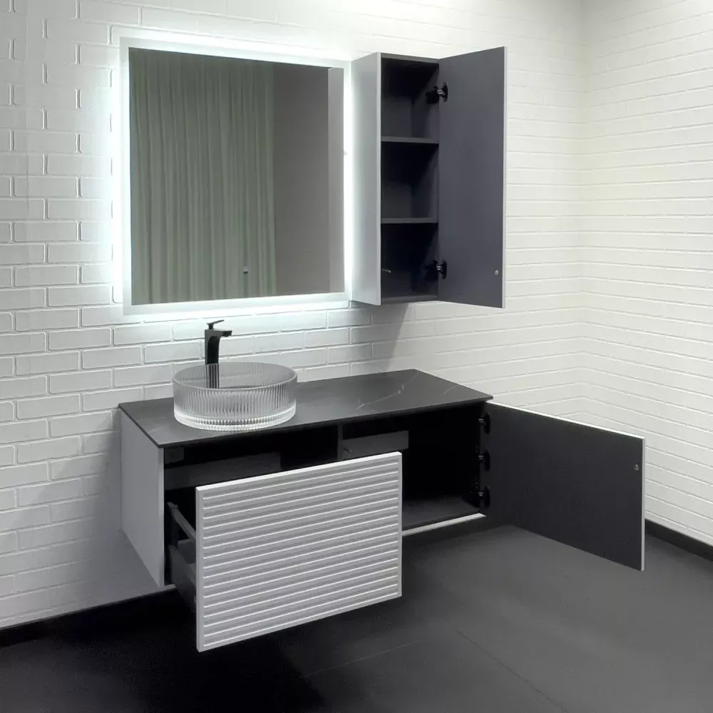 Тумба-умывальник Comforty Геленджик 120 белый матовый со столешницей мрамор Калакатта Блэк c раковиной Comforty CF21001 купить