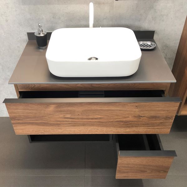Тумба-умывальник COMFORTY Штутгарт-90 00-00002868, дуб тёмно-коричневый с черной столешницей c раковиной COMFORTY T-Y9378