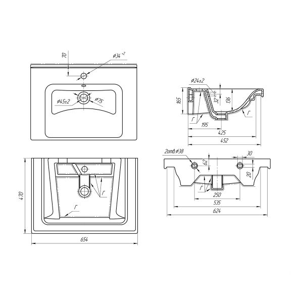 Умывальник мебельный Dreja Гармония-65