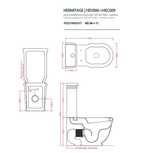 УнУнитаз Artceram HERMITAGE HEV006 01 00 белыйArtceram HERMITAGE унитаз моноблок пристенный 71*36см слив в стену с креплением, цвет белый
