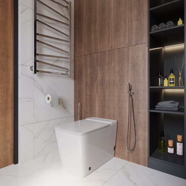 - Прилегание унитаза к стене:вплотную