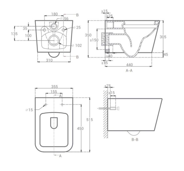 Унитаз Hansmann keramik KVADRO GREY УНИ0015 подвеснойДлина, см51,5