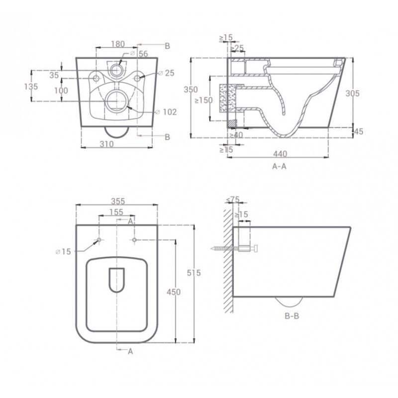 Унитаз Hansmann keramik KVADRO GREY УНИ0016 подвеснойДлина, см51,5