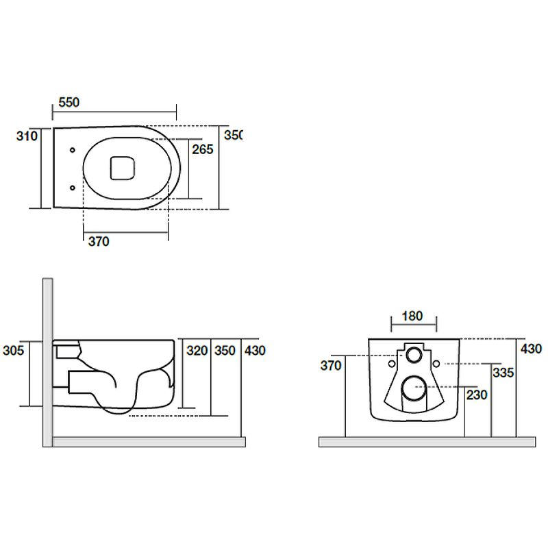• Прилегание унитаза к стене:
