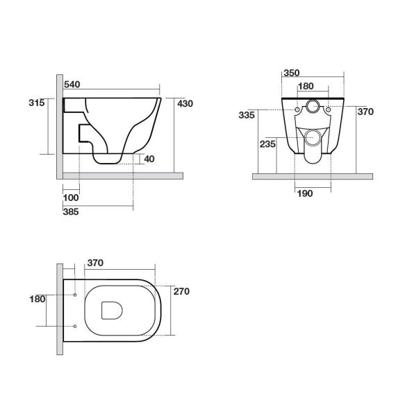 • Прилегание унитаза к стене: