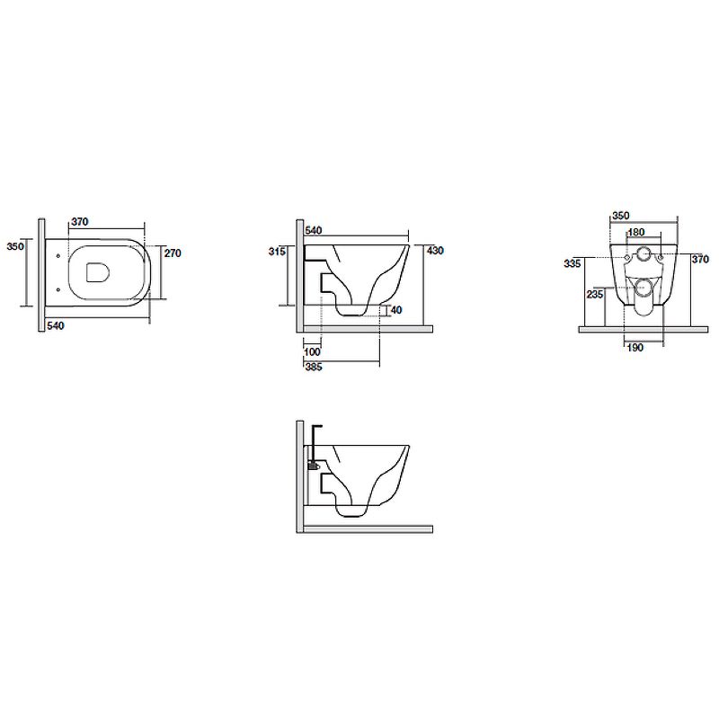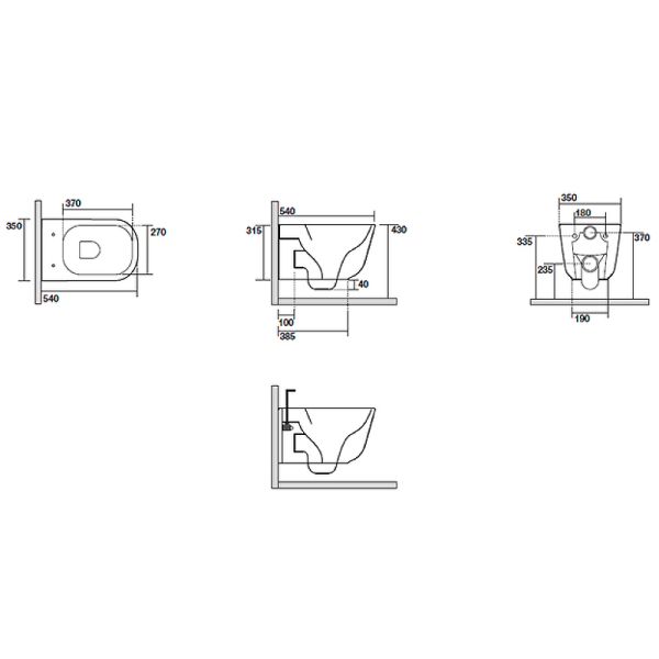 • Прилегание унитаза к стене: