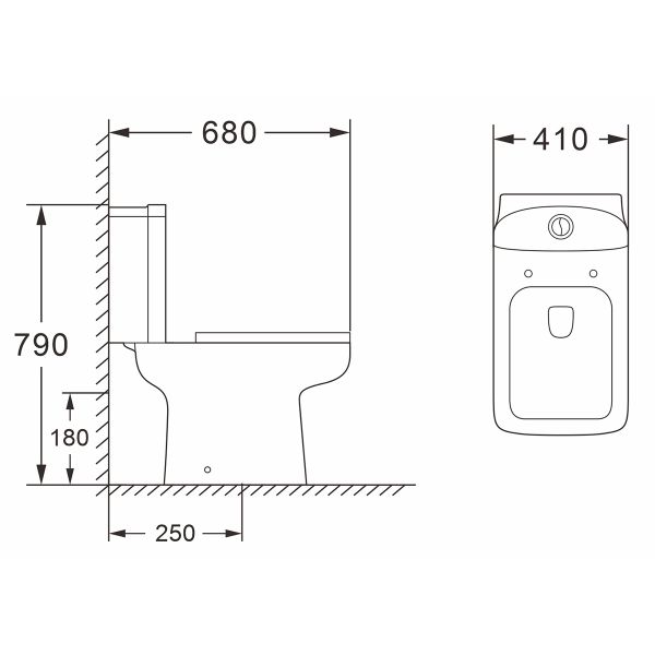 • Прилегание унитаза к стене: