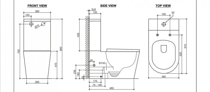 • Прилегание унитаза к стене: