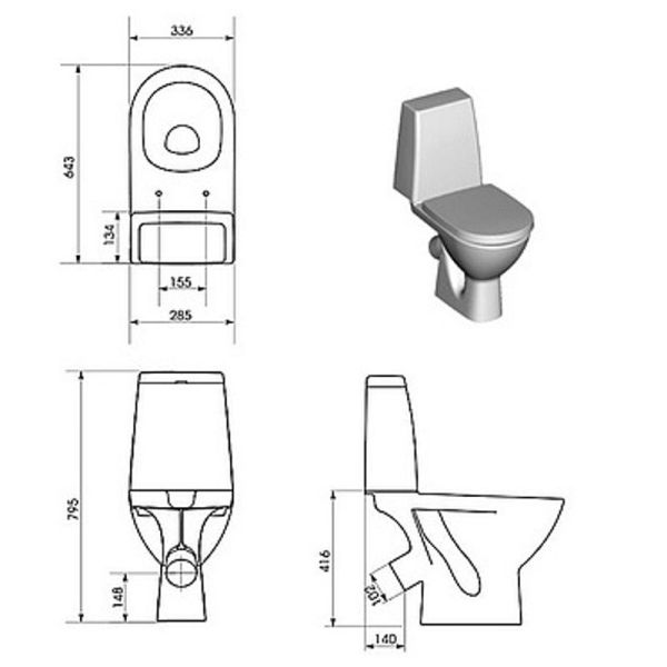 • Укороченный унитаз: