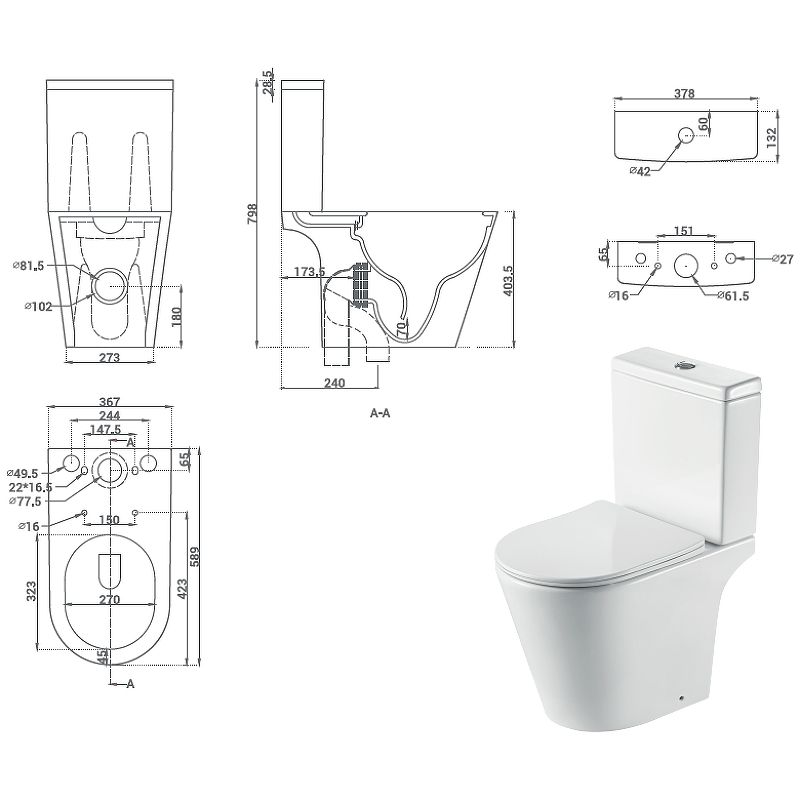 • Укороченный унитаз: