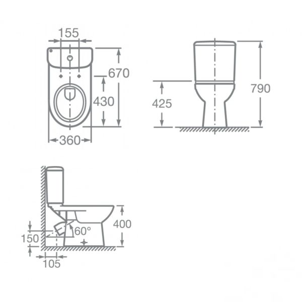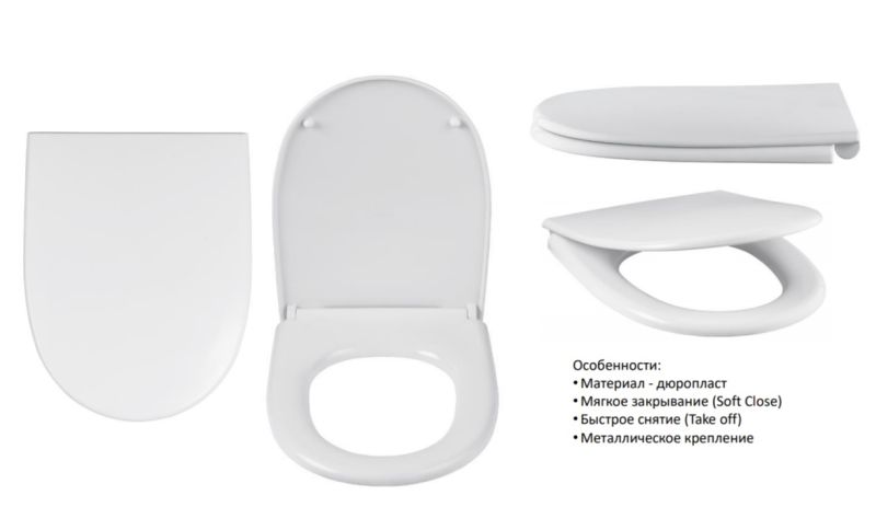- Крышка-сиденье: дюропласт, с функцией плавного закрывания, металлические крепления