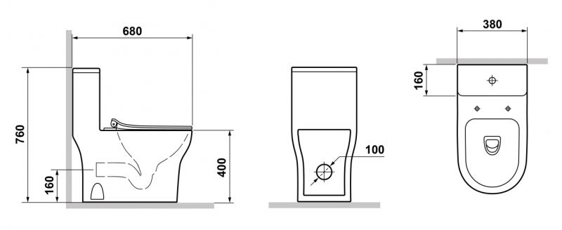 • Прилегание унитаза к стене: