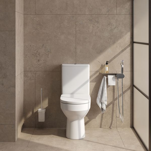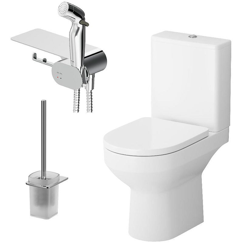 Унитаз напольный AM.PM Spirit V2.0 FlashClean CK70C1804W белыйИнновационное и стильное дизайнерское решение для вашей туалетной комнаты от AM.PM. Полностью готовый к установке комплект: напольный унитаз компакт, сиденье для унитаза микролифт, гигиенический набор с полкой, стойка с туалетной щеткой. Выверенный геометрический дизайн: ровные поверхности в сочетании с четкими гранями. Экономичная система смыва EcoLogic: при каждом смыве экономится 0,6 литров воды, а это 4500 литров в год для семьи из 4-х человек. Материал сиденья дюропласт, устойчивый к появлению царапин, в сочетании с креплениями из нержавеющей стали гарантируют долговечность сиденья. Многофункциональный гигиенический набор представляет собой удобную полочку, на которой можно разместить все, что необходимо вам под рукой. На интегрированном держателе можно размещать туалетную бумагу, а на крючке - полотенце. Завершает комплект подвесная стойка с туалетной щеткой в стиле Hi-Tech. Продуманный дизайн и удивительные детали – отделение для хранения в держателе для туалетной бумаги.