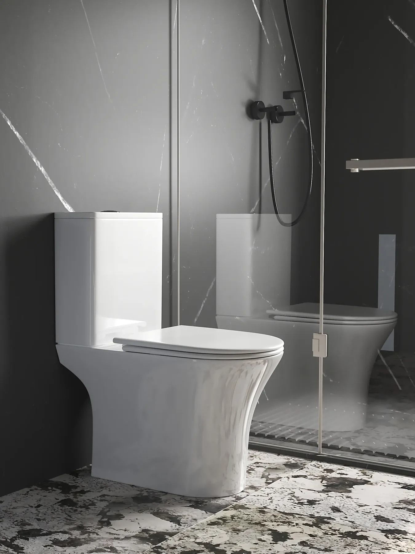 Использование нижней подводки воды позволило добиться практически бесшумного наполнения бачка водой. А сами шланги скрыты от посторонних глаз удобным дизайном чаши унитаза.