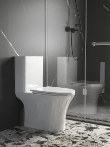 В комплекте присутствует легкосъемное сидение с крышкой, оснащенное системой микролифт (для плавного и бесшумного опускания). Крепления к чаше выполнены из стали, а само сидение - из долговечного полимерного материала – дюропласта с антибактериальным покрытием. Снятие осуществляется одним нажатием кнопки.Смыв в унитазе происходит по принципу TORNADO – поступающая из отверстия в чаше вода мощным потоком закручивается (эффект водоворота) и полностью очищает всю внутреннюю поверхность чаши. При этом воды требуется на качественный смыв в небольшом количестве.