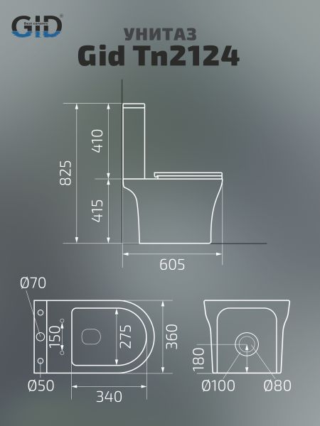 Унитаз напольный Gid Tn2124 62244Y белый 60.5x36x82.5 купить