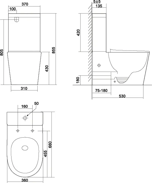 • Антивсплеск: форма воронки унитаза предотвращает образование брызг
