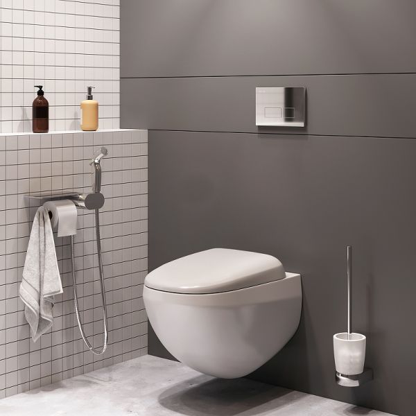 Унитаз подвесной AM.PM Sensation FlashClean FlashClean CK30H0904W белыйКомпактное и стильное дизайнерское решение для вашей туалетной комнаты от AM.PM. Полностью готовый к установке комплект: подвесной унитаз FlashClean, сиденье для унитаза микролифт, гигиенический набор с полкой, стойка с туалетной щеткой. Дизайн униказа отмечен премиями iF Design и Good Design. FlashClean — новое поколение безободковых унитазов без использования пластика: 100% гигиеничности, 0% брызг. Полностью скрытые крепления, скрытый фановый выход обеспечат эстетическую чистоту дизайна и лёгкость в уходе за керамикой. Комплект дополнен быстросъемным сиденьем из дюропласта. Механизмы плавного опускания и быстрого снятия - комфорт в использовании и легкость в уходе за сиденьем и керамикой. Идеальное сочетания дизайна сиденья и керамики. Многофункциональный гигиенический набор представляет собой удобную полочку, на которой можно разместить все, что необходимо вам под рукой. На интегрированном держателе можно размещать туалетную бумагу, а на крючке - полотенце. Завершает комплект подвесная стойка с туалетной щеткой. Наиболее эстетически совершенные радиусы характерной формы Sensation повторяют линии других продуктов коллекции, идеально завершая образ ванной комнаты.