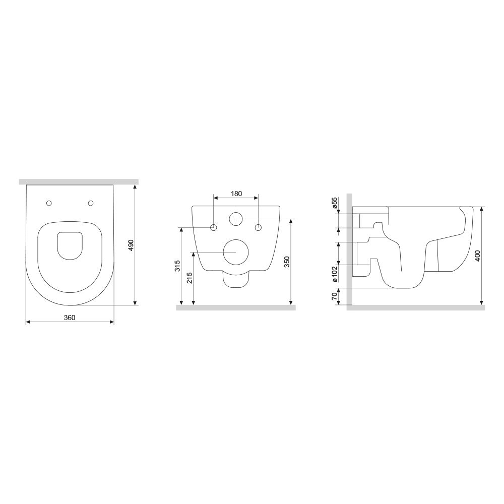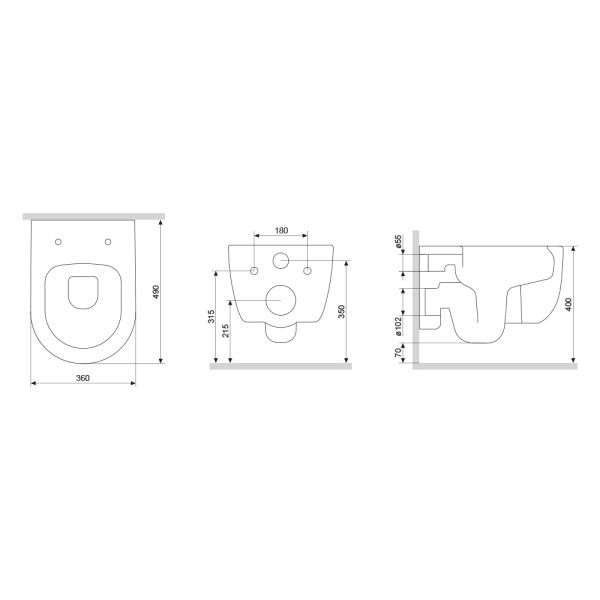 Прилегание унитаза к стене:вплотную