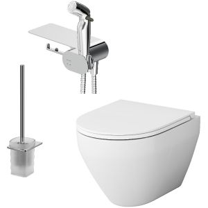 Унитаз подвесной AM.PM Spirit V2.0 FlashClean FlashClean CK70H1003W белыйИнновационное и стильное дизайнерское решение для вашей туалетной комнаты от AM.PM. Полностью готовый к установке комплект: подвесной унитаз FlashClean, гигиенический набор с полкой, стойка с туалетной щеткой. Выверенный геометрический дизайн чаши - идеально ровные поверхности с четкими гранями, - отмечен премиями iF Design и Good Design. FlashClean - новое поколение безободковых унитазов без использования пластика: 100% гигиеничности, 0% брызг. Многофункциональный гигиенический набор представляет собой удобную полочку, на которой можно разместить все, что необходимо вам под рукой. На интегрированном держателе можно размещать туалетную бумагу, а на крючке - полотенце. Завершает комплект подвесная cтойка с туалетной щеткой. Стильный аксессуар, который идеально впишется в современную ванную комнату и будет радовать глаз каждый день.