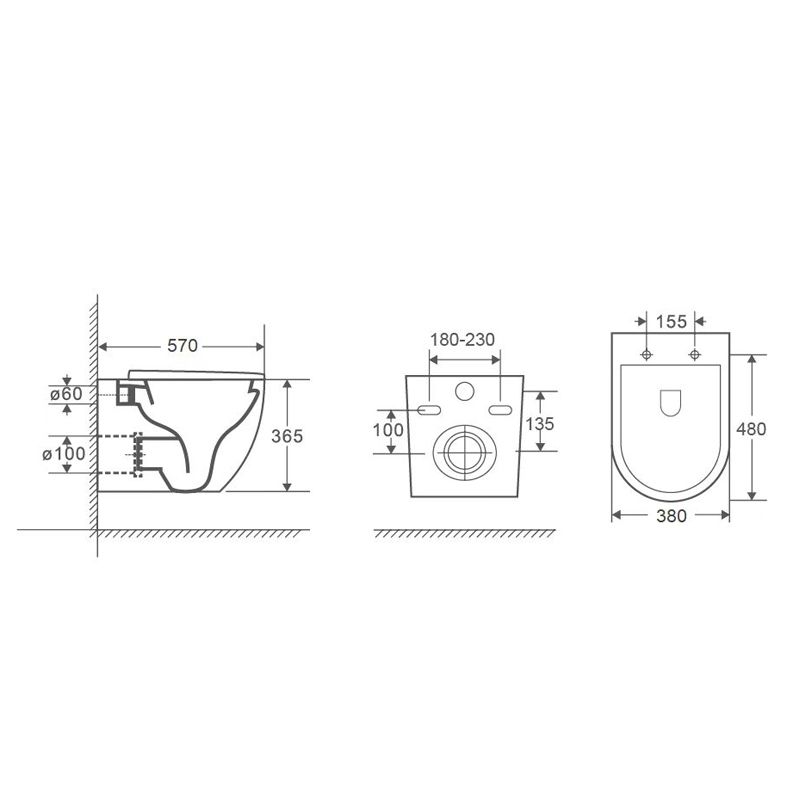 • Прилегание унитаза к стене: