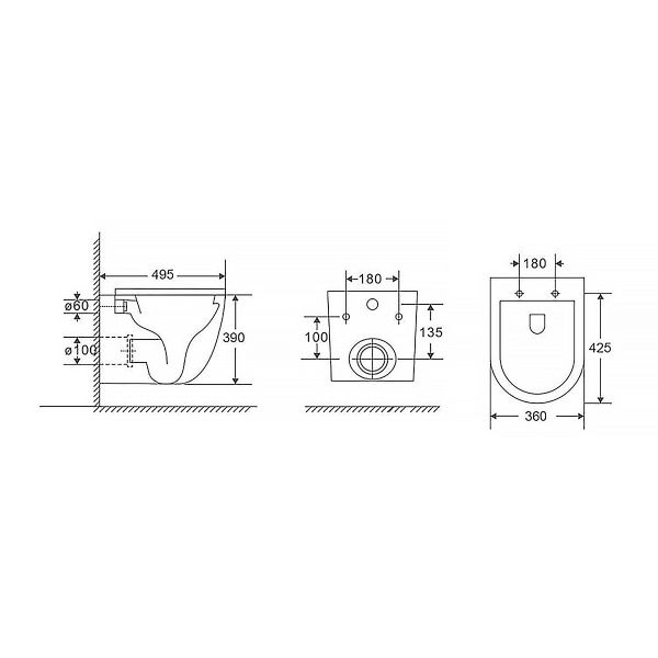 • Прилегание унитаза к стене: