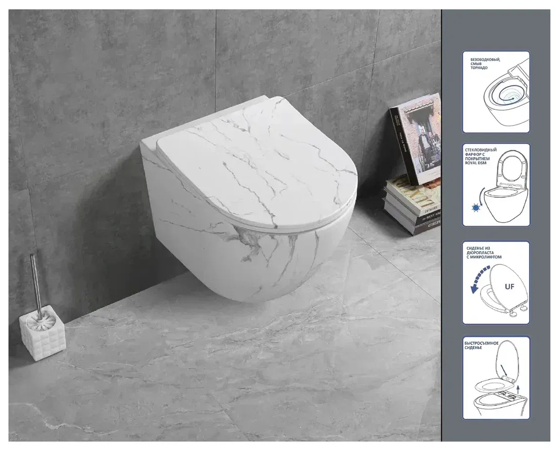 Унитаз подвесной Ceruttispa Sella Aria Tornado CT9532 безободковый белый мрамор матовый купить