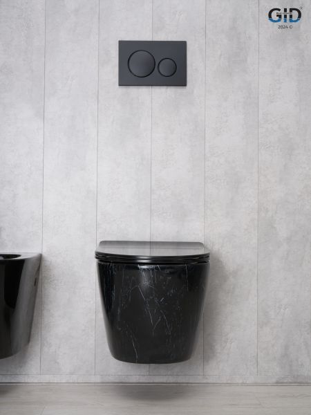 Convexo — коллекция округлых унитазов и биде, идеально подходящих для современных интерьеров. Испанское качество и соответствие европейским нормам — основные черты серии. Подвесной безободковый унитаз GiD Bs2198 - модель с горизонтальным выпуском выполнена из мелкопористой керамики в черном глянцевом цвете имитирующим неповторимые узоры камня. Оснащена быстросъёмным сиденьем из дюропласта с функцией микролифта, обеспечивающей плавное и бесшумное опускание крышки. Благодаря антигрязевому покрытию и воронкообразной овальной чаше унитаз обеспечивает высокий уровень гигиены и легкость ухода. Комплект: подвесной унитаз GiD Bs2198 с креплениями для скрытого монтажа; сиденье с креплениями.