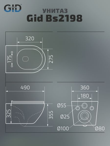 Унитаз подвесной Gid Bs2198 62227Y под камень глянцевый 49x36x35.5 купить