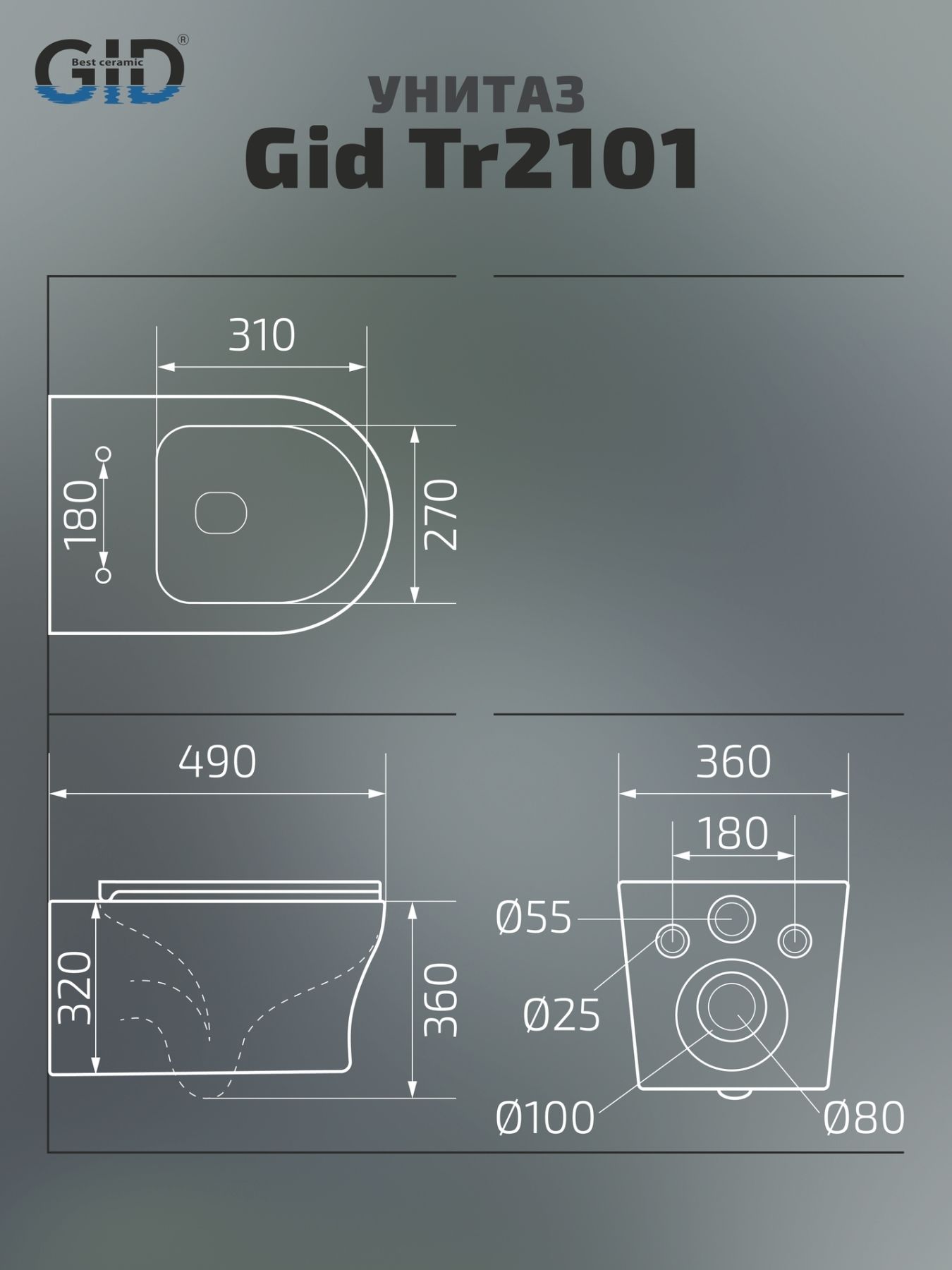 Унитаз подвесной Gid Tr2101 62232Y белый 49x36x36 купить