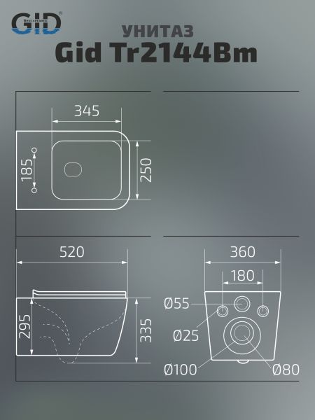 Унитаз подвесной Gid Tr2144Bm 62225Y черный матовый 52x36x33.5 купить