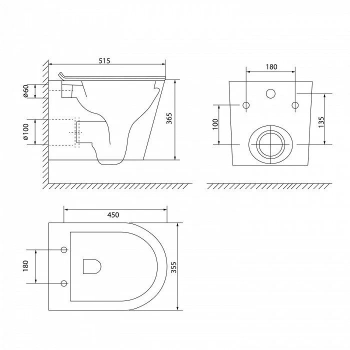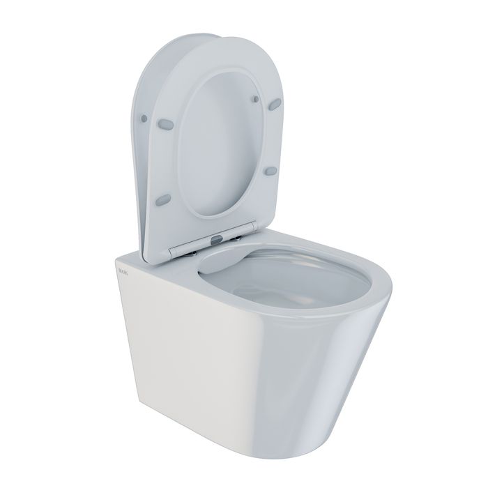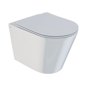 Унитаз подвесной безободковый с сиденьем из дюропласта с функциями Soft Close, Easy Fix. Размер 515х353х360 мм (ДхШхВ). Сиситема скрытых крепежей. Скрытый гидрозатвор. Система антивсплеск. Горизонтальный выпуск, высококачественный санфарфор. Комплект крепежных элементом для скрытого монтажа. Упаковка: картонная коробка.