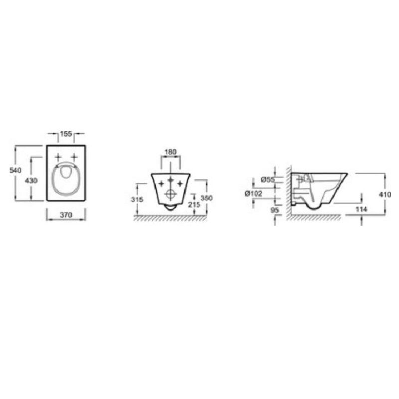 • Прилегание унитаза к стене: