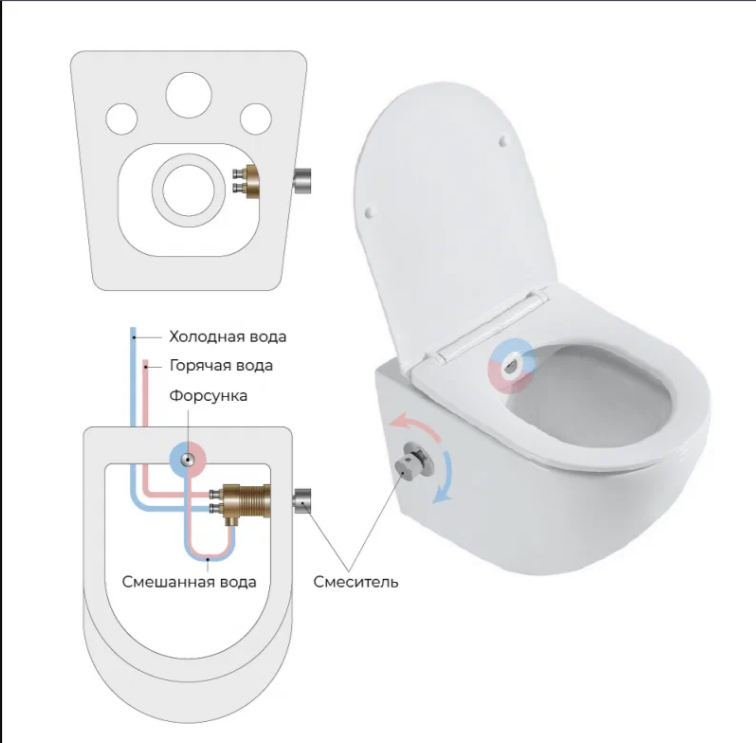 Режим смыва воды:определяется системой инсталляции