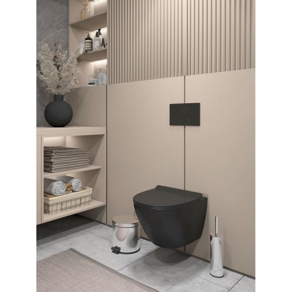 Представляем вашему вниманию подвесной унитаз Maretti Elena EA10PBM93-560 в элегантном черном цвете. Он изготовлен из качественного санфарфора и отличается отсутствием ободка, что упрощает его гигиеническую очистку и позволяет избежать скопление загрязнений.Вихревая система смыва обеспечивает эффективное устранение загрязнений, а антивсплесковая система предотвращает появление неприятных брызг. Антигрязевое покрытие на поверхности унитаза помогает сохранить первозданный вид и упрощает уход за изделием.Данный унитаз комплектуется быстросъемным сиденьем с функцией микролифта, обеспечивающей плавное опускание сиденья без ударов. Межосевое расстояние для крепежных шпилек инсталляции составляет 18 сантиметров, что соответствует стандартам большинства инсталляций.Гарантия на этот товар составляет 10 лет, подтверждая его высокое качество и долговечность. Подвесной унитаз Maretti Elena станет отличным выбором для тех, кто ценит стиль, комфорт и гигиену.