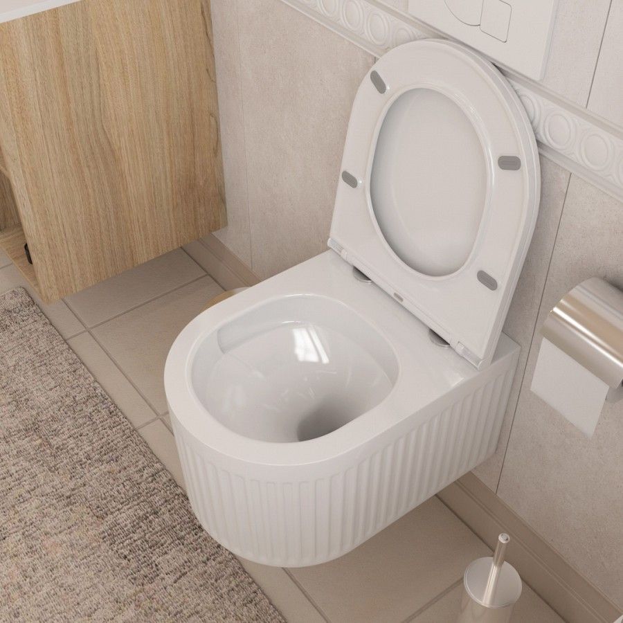 Представляем вашему вниманию подвесной унитаз Maretti Renata RE10PBM33-844 в элегантном белом цвете. Он изготовлен из качественного санфарфора и отличается отсутствием ободка, что упрощает его гигиеническую очистку и позволяет избежать скопление загрязнений.Вихревая система смыва обеспечивает эффективное устранение загрязнений, а антивсплесковая система предотвращает появление неприятных брызг. Антигрязевое покрытие на поверхности унитаза помогает сохранить первозданный вид и упрощает уход за изделием.Данный унитаз комплектуется быстросъемным сиденьем с функцией микролифта, обеспечивающей плавное опускание сиденья без ударов. Межосевое расстояние для крепежных шпилек инсталляции составляет 18 сантиметров, что соответствует стандартам большинства инсталляций.Гарантия на этот товар составляет 10 лет, подтверждая его высокое качество и долговечность. Подвесной унитаз Maretti Renata станет отличным выбором для тех, кто ценит стиль, комфорт и гигиену.