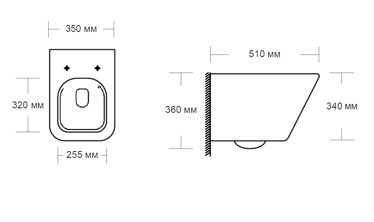 - Прилегание унитаза к стене:вплотную