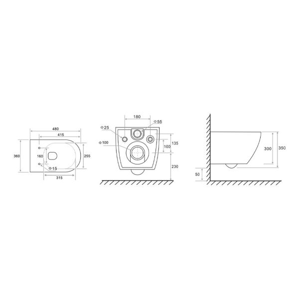 • Прилегание унитаза к стене: