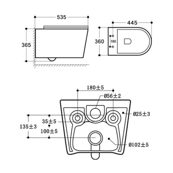 • Прилегание унитаза к стене: