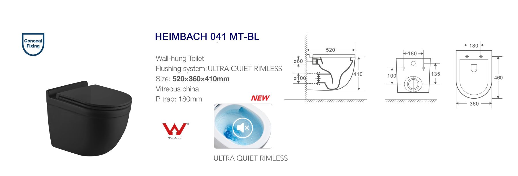 Унитаз подвесной Weltwasser WW HEIMBACH 041 MT-BL 10000009903 черный* УНИТАЗ ПОДВЕСНОЙ БЕЗОБОДКОВЫЙ RIMLESS* УЛЬТРА ТИХИЙ СЛИВ ВОДЫ* Технология слива TORNADO* Антивсплеск* Горизонтальный выпуск* Сиденье: тонкое, быстросъёмное, с микролифтом.* Антибактериальное покрытие (технология PureGuard) препятствует размножению бактерий* Особая глазурь для легкой очистки отталкивает известковые отложения и загрязнения* Цвет: черный матовый